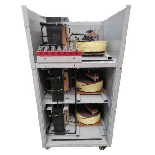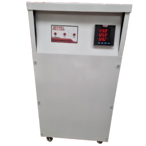 Los reguladores trifásicos, cuentan con una regulación independiente por fase, para la corrección del desfasamiento que comúnmente se encuentra en la línea eléctrica, asegurando un voltaje balanceado entre fases en su línea de salida.